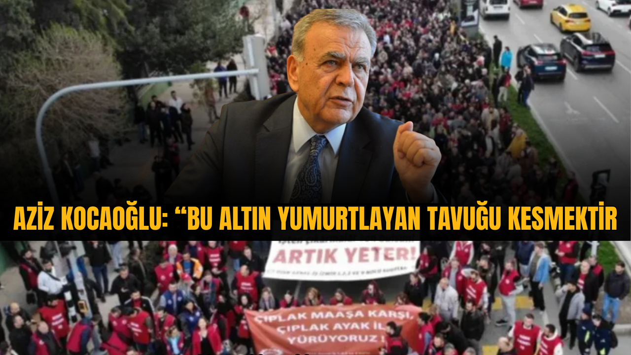 “Burada emeğini satan, ailesine bakan, iyi ücret alan işçilerin fedakârlık yapması gerekiyor. Altın yumurtlayan tavuğu kesmemeleri gerekiyor. Şu anda İzmir Büyükşehir Belediyesi, çalışan işçi için altın yumurtlayan tavuktur.”