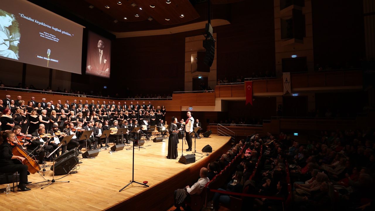 İzmir Büyükşehir Belediyesi, müzikseverlere Klasik Türk Müziği Korosu eşliğinde unutulmaz bir akşam yaşattı. "Sonbahar Şarkıları" temalı konser, mevsimin hüzünlü ve romantik ezgilerini sanatla buluşturdu. Ahmed Adnan Saygun Sanat Merkezi'nde gerçekleştirilen konserde, şef Hüseyin Tolu yönetimindeki 120 kişilik dev koro, Türk müziğinin hüzzam, nihavend, kürdilihicazkar makamlarının seçkin eserlerini seslendirdi.