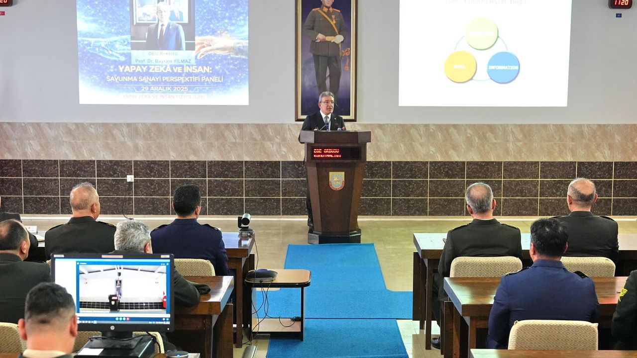 Panelin açılış sunumunu gerçekleştiren DEÜ Rektörü Prof. Dr. Bayram Yılmaz ise “Yapay Zekâ ve İnsan Fizyolojisi” başlıklı sunumuyla, yapay zekânın insan ve savunma sanayi üzerindeki etkilerine ilişkin değerlendirmelerde bulundu.