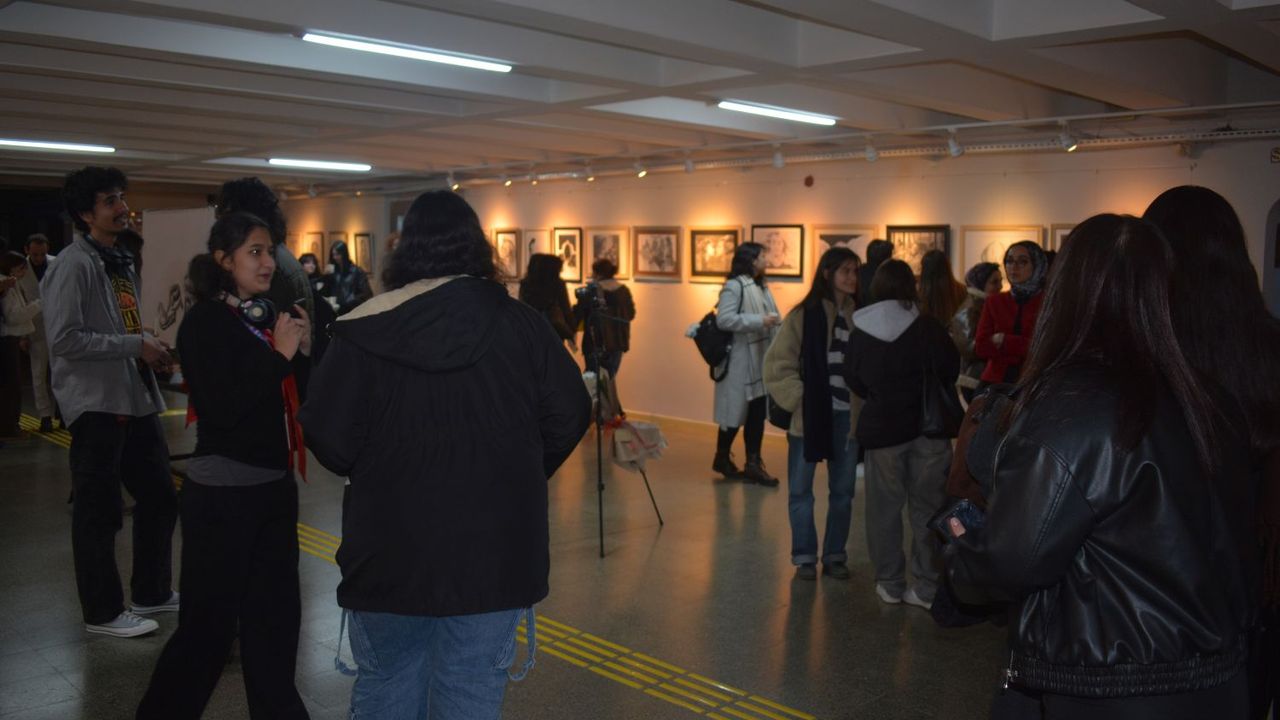 Sergide, öğrencilerin dönem boyunca ürettiği karakalem eserler beğeniye sunulurken, sergi kapsamında gerçekleştirilen canlı resim performansı da ziyaretçilerden ilgi gördü.