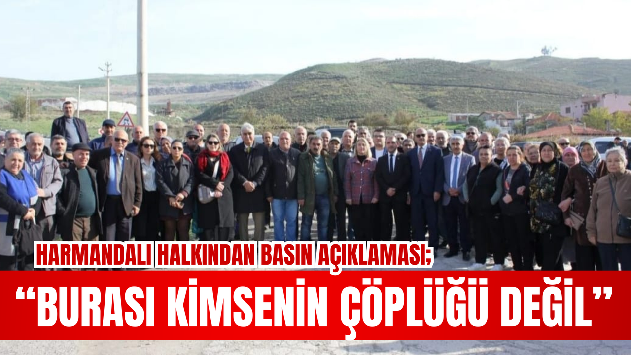 Harmandalı halkı adına açıklama yapan Cumhuriyet Mahallesi’nin eski muhtarı Dursun Ali Kazar, “Bornova çöp istemiyor, Karşıyaka çöp istemiyor, Menemen çöp istemiyor… Peki siz hiç çöp üretmiyor musunuz? O zaman çöpünüzü alın, başınıza çalın. Harmandalı sizin babanızın deneme sahası değil!” sözleriyle tepkisini dile getirdi.