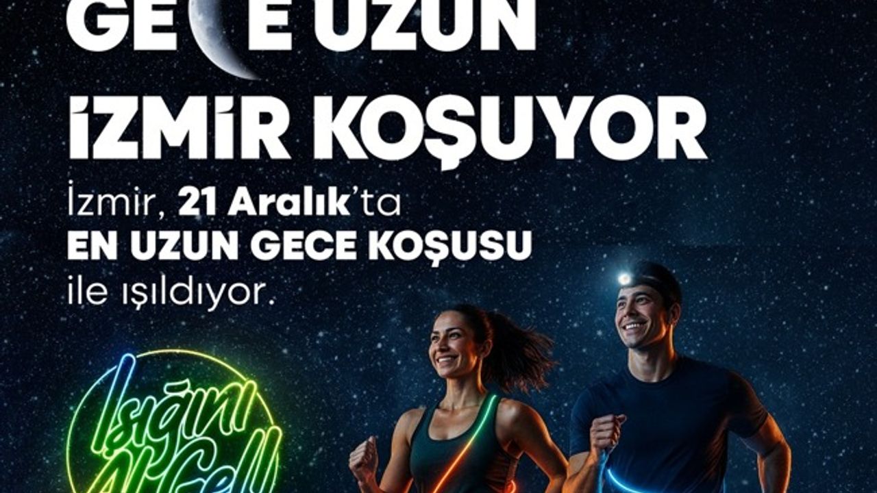 21 Aralık’ta düzenlenecek “En Uzun Gece Koşusu”, İzmirlileri gece boyunca ışıklarıyla kenti aydınlatmaya davet ediyor. “Işığını Al Gel” sloganıyla gerçekleştirilecek etkinlikte katılımcılar, 6,5 kilometrelik parkurda koşacak.