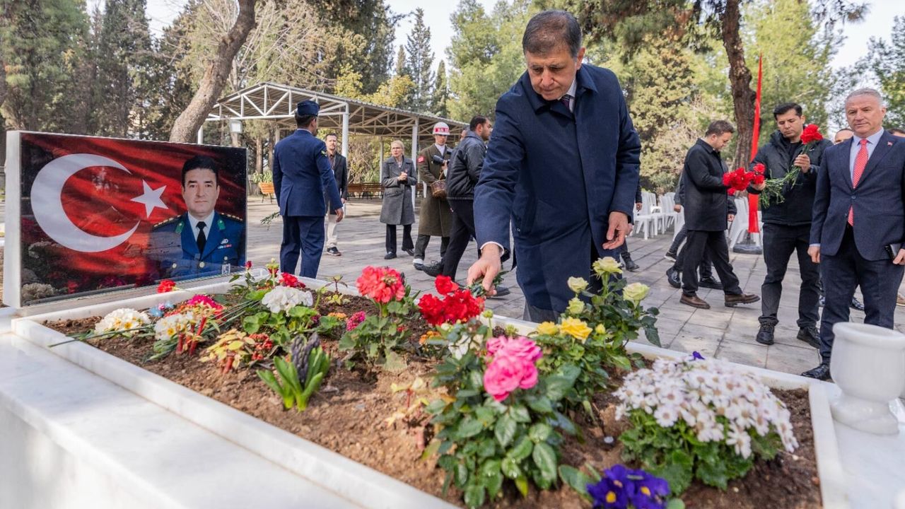 Törende Narlıdere Arkas Mesleki Teknik Anadolu Lisesi öğrencisi Gökçe Kurtcebe, “Çanakkale” adlı şiiri okudu. İzmir Valisi Dr. Süleyman Elban şehitlik defterini imzalandı. Kuran-ı Kerim Tilaveti ve dua okundu. Daha sonra şehit kabirleri ziyaret edildi ve karanfil bırakıldı. Şehitliklere karanfil bırakarak dua okuyan İzmir Büyükşehir Belediye Başkanı Dr. Cemil Tugay, şehit yakınları ve gazilerle de sohbet etti. Tugay, geçtiğimiz günlerde kullandığı F-16 tipi savaş uçağının düşmesi sonucunda şehit olan Hava Pilot Binbaşı İbrahim Bolat’ın kabrini de ziyaret edip ailesine başsağlığı diledi.