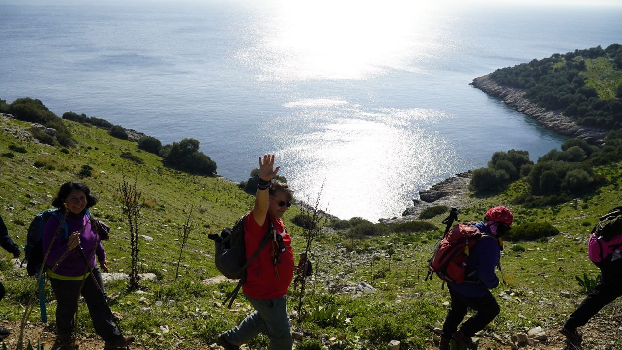 Mandalina bahçeleri ve çam ağaçlarıyla çevrili köy patikalarından geçen yürüyüş rotası, Ahmetbeyli sahilinde sona erdi. Doğayla iç içe geçen kültür gezisi, üniversite öğrencilerine açık hava müzesi atmosferinde unutulmaz bir deneyim yaşattı.